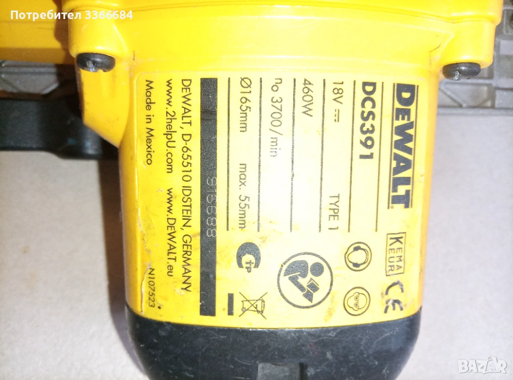 Акумулаторен циркуляр dewalt dcs391 → Обява 53324408
