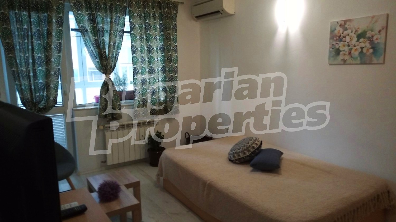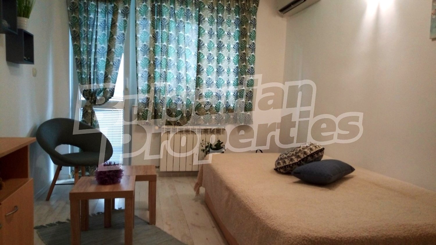 Жилището се отдава напълно обзаведено, в много добро състояние, с отопление и охлаждане чрез климатици. Подходящо е за дългосрочно наемане, с минимален срок от една година.