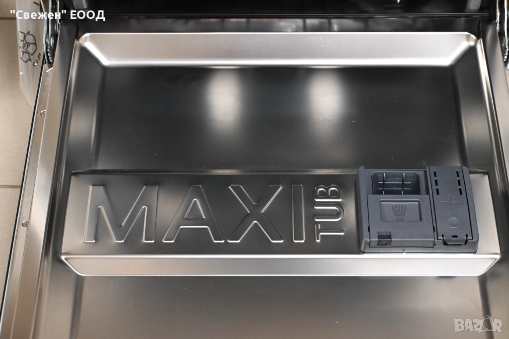 Maxi Tub: Системата Maxi Tub осигурява увеличен вътрешен обем и позволява зареждане до 16 комплекта съдове. Благодарение на оптимизирания дизайн могат лесно да се поберат големи тенджери, тигани и обемни съдове.
