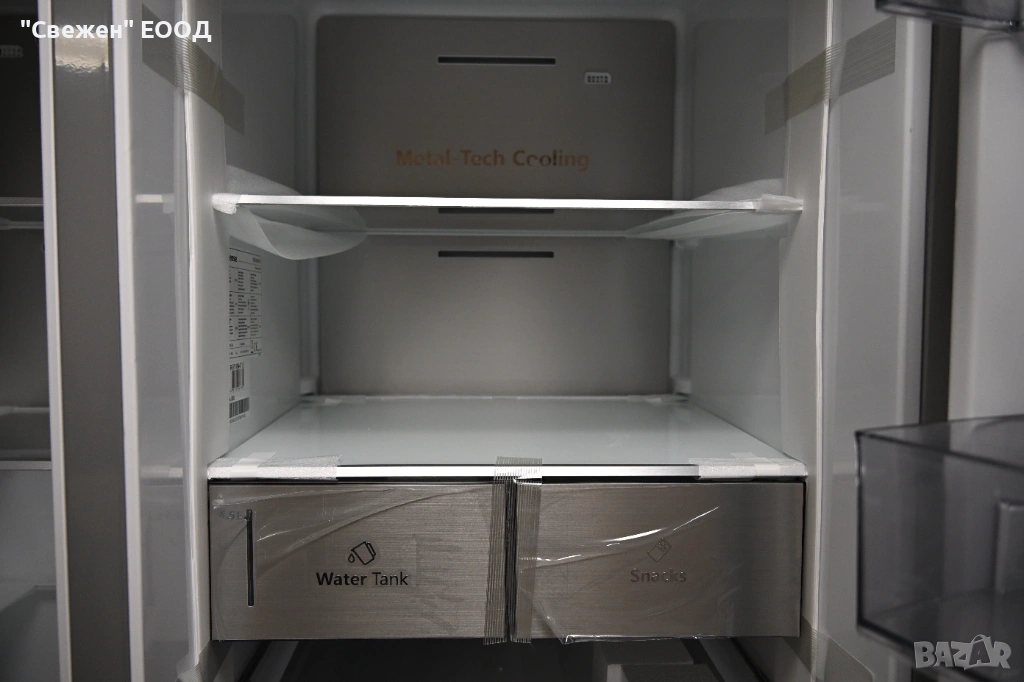 Metal Tech Cooling е иновативна технология, при която задната стена на хладилната част е покрита с метален (inox) панел. Той спомага за по-бързо възстановяване на температурата след отваряне на вратата и за по-равномерно разпределение на студа в целия обем. Металната повърхност задържа студения въздух и минимизира температурните колебания, което е ключово за по-дълго запазване на свежестта на храните. Това е особено полезно при често отваряне или при съхранение на чувствителни продукти като млечни изделия, месо и пресни зеленчуци. Metal Tech Cooling съчетава функционалност и премиум визия, допринасяйки за модерния интериор на хладилника. Технологията подпомага стабилната работа на охладителната система и повишава цялостната ефективност. Резултатът е по-постоянен климат и по-добри условия за съхранение.