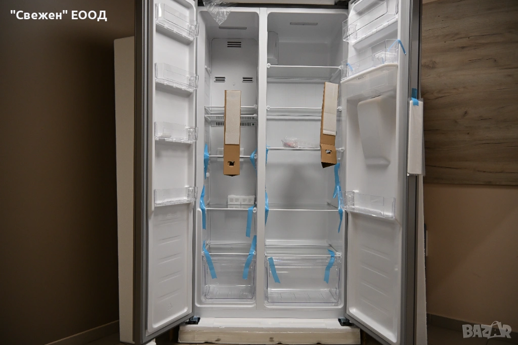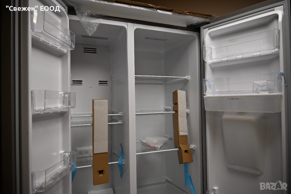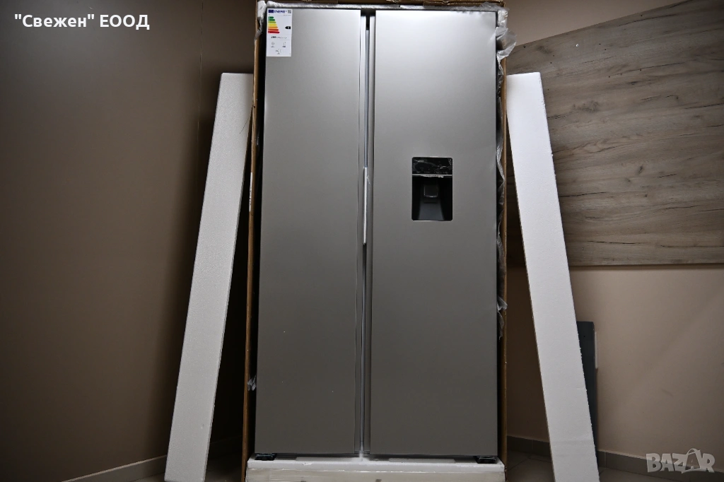 Вграден диспенсър за вода: Практичен диспенсър за вода с интегриран резервоар директно във вратата на хладилника. Осигурява студена вода на момента, без нужда от външно водоснабдяване – перфектно за освежаващи напитки и ежедневна употреба.