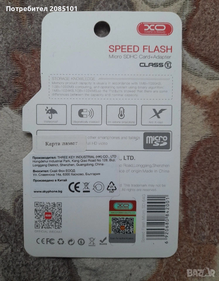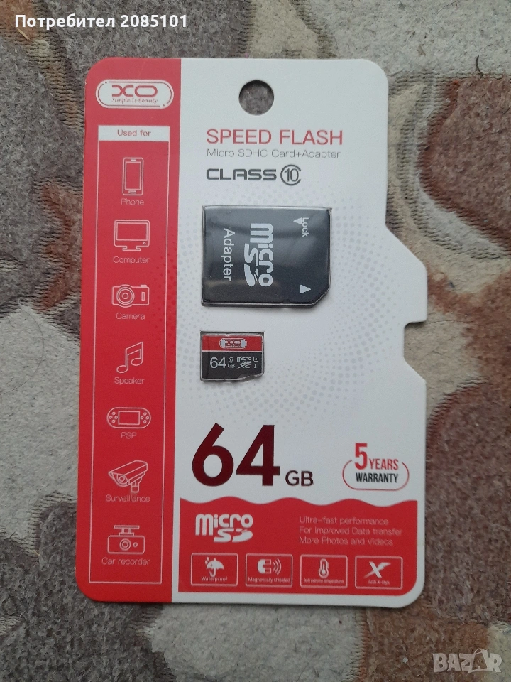 Карта памет microSD XO 64GB, Class 10 + адаптер → Обява 53325131