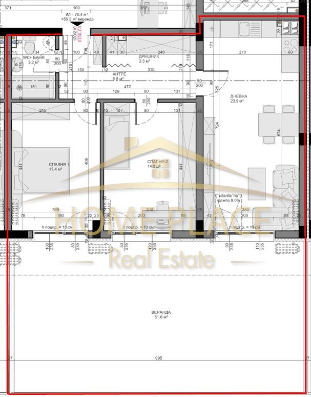 -Площ: 89.49кв.м. (ЧЖП 76.40кв.м.);