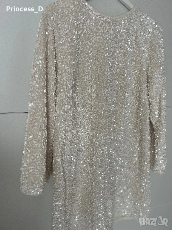 Страхотна рокля с пайети и плюш. Много красива на живо. Обличана е веднъж. Неразличима от нова. Модела е свободен. На марката H&M.