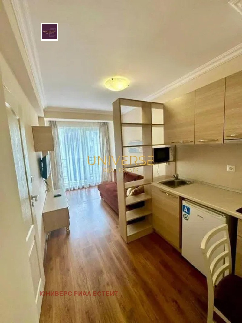 Предлагаме апартамент в луксозен комплекс в Слънчев бряг, в квартал Чайка. Състои се от хол с кухненски бокс, спалня, баня с душ и балкон. Апартаментът е оборудван с висококачествени мебели и електроуреди. Комплексът разполага с басейн, паркинг и сауна. В близост има целогодишни магазини, а морето е на 7 минути пеша. Акт 16.#5521