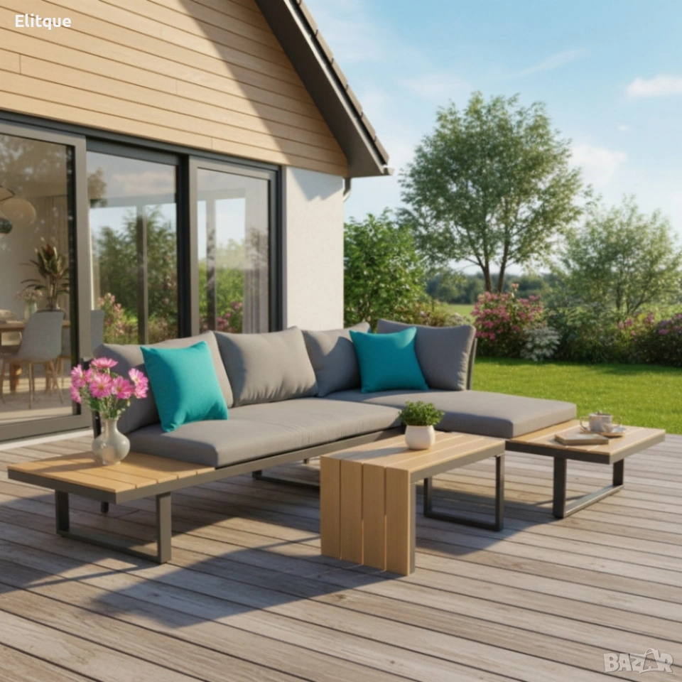 Градински комплект KANZA - модулен ъглов диван от алуминий с удобни възглавници и маса