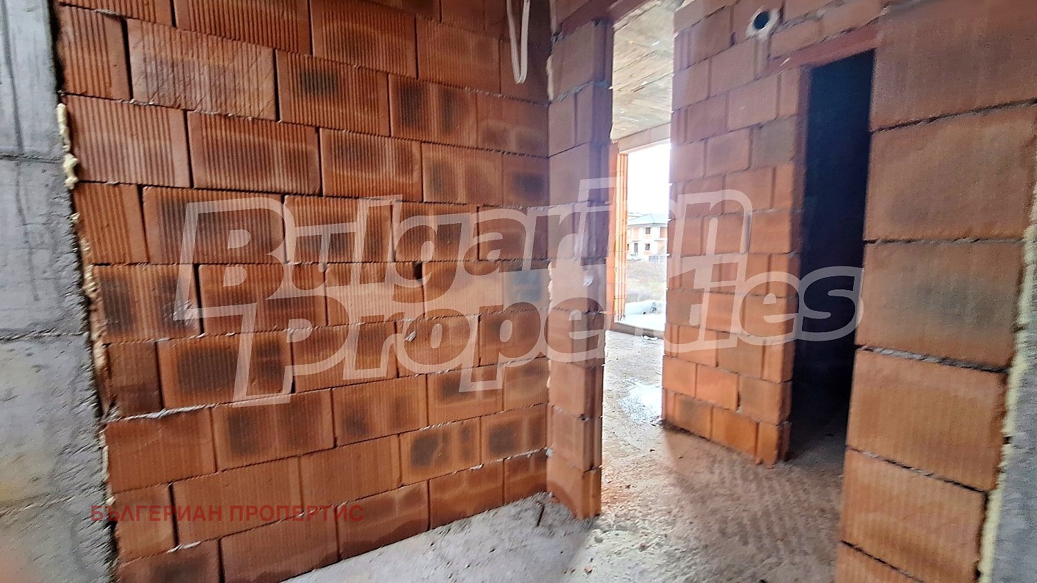 Къщата е завършена до БДС (шпакловка и замазка), като предстои завършване на интериора по вкуса на новия собственик. В сградата са използвани висококачествени материали, включително ПВЦ дограма с троен стъклопакет, тухлени стени и циментова настилка. В наличност има септична яма с пречиствателна станция.