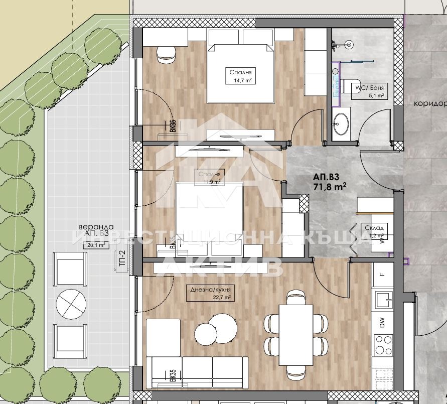ИНВЕСТИЦИОННА КЪЩА АКТИВ представя ексклузивно тристаен апартамент в Марица Парк , кв. Кършияка, Пловдив.