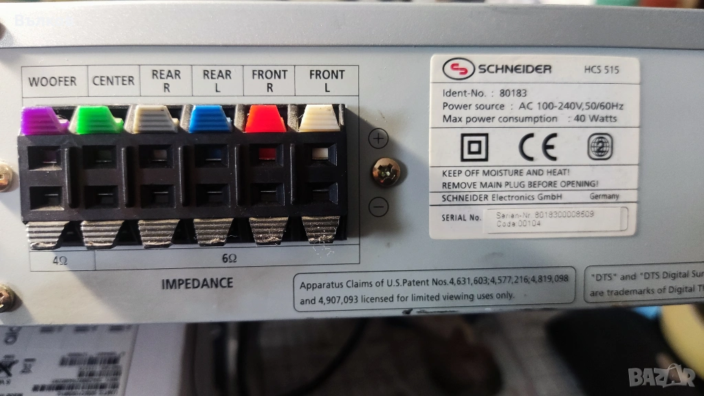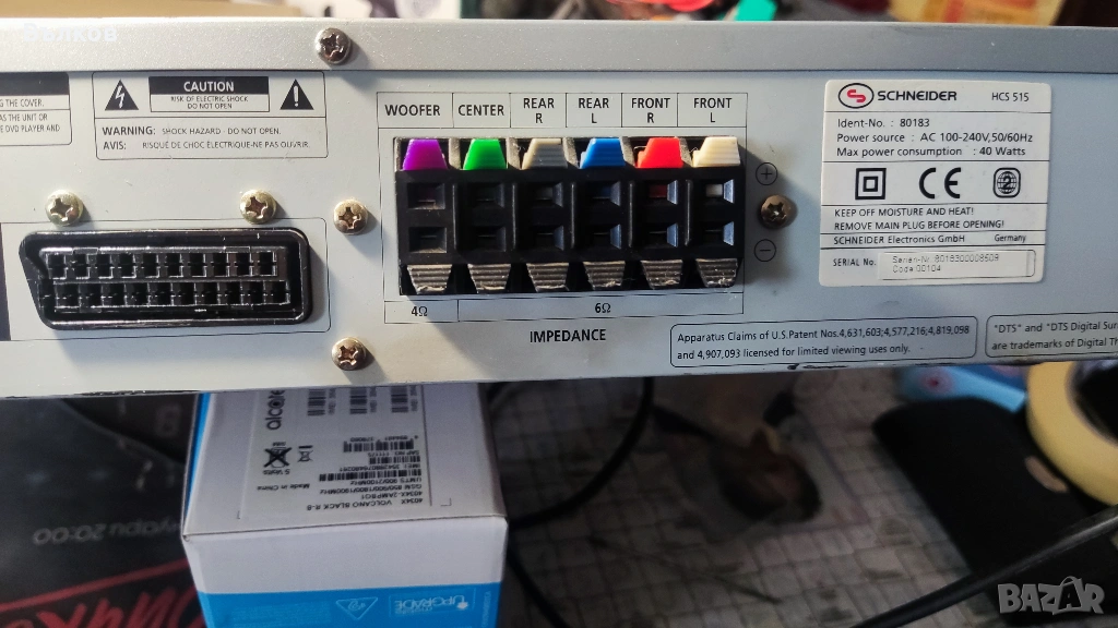 Домашно кино,ДВД,радио и усилвател HCS515,не изпробван,свети при включване.Внос от Германия.Shneider HCB515.