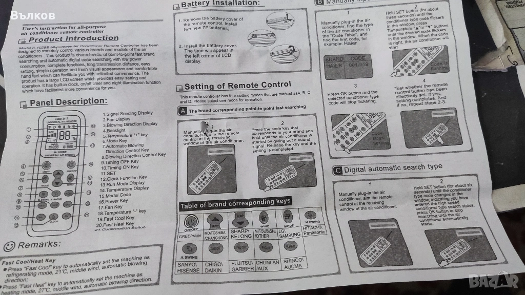 Ново Универсално дистанционно за климатици → Обява 53326518
