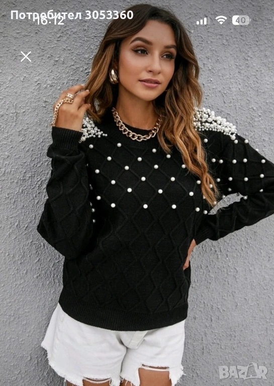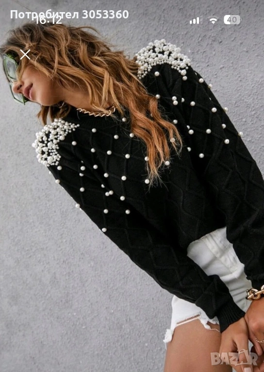 Дамска блуза с перли в размер S, снимка 1 - Блузи с дълъг ръкав и пуловери - 53326612 Дамска блуза с перли в размер S, снимка 2 - Блузи с дълъг ръкав и пуловери - 53326612 Дамска блуза с перли в размер S, снимка 3 - Блузи с дълъг ръкав и пуловери - 53326612 1/3