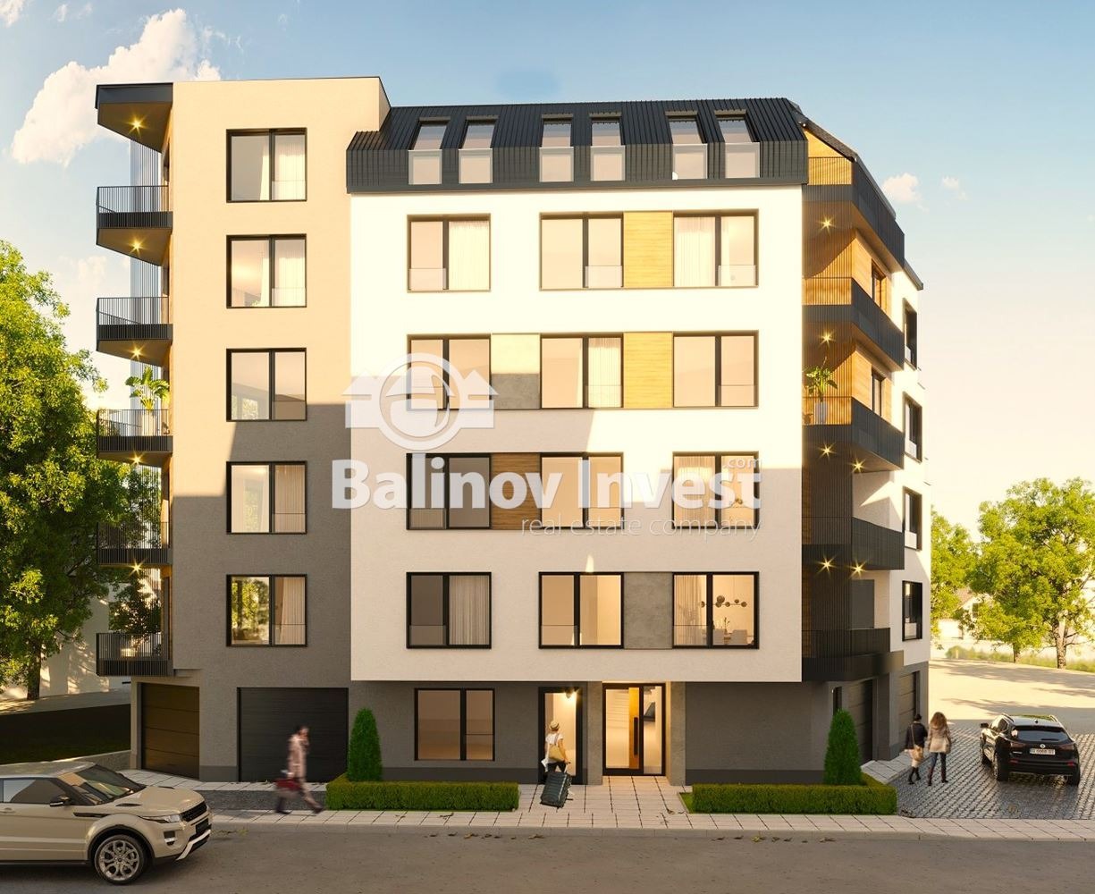 Тристаен партерен апартамент/ателие, което е със статут на жилище, може и за офис да бъде ползвано/ с веранда/двор и 2 броя парко места. Състоящ се от: коридор 9 м2, дневна с кухненски бокс 18.90м2 с веранда/двор 28 м2, първа спалня 12.73 м2, втора спалня 10.95 м2, баня 3.25 м2, тоалетна 1.90 м2. Степен на завършеноност по БДС.