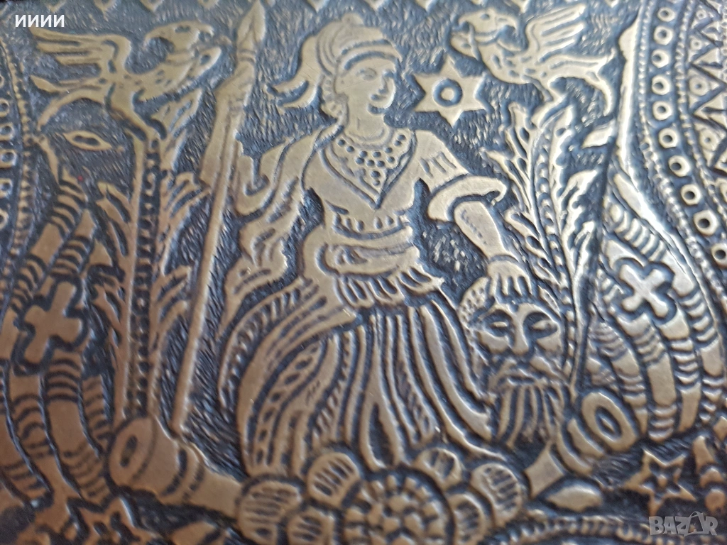 Автентична, запазена и здрава. Ръчно изработена със сцена, жена войвода, държи отрязана османска глава, размери 13 / 10,5 / 3 см.