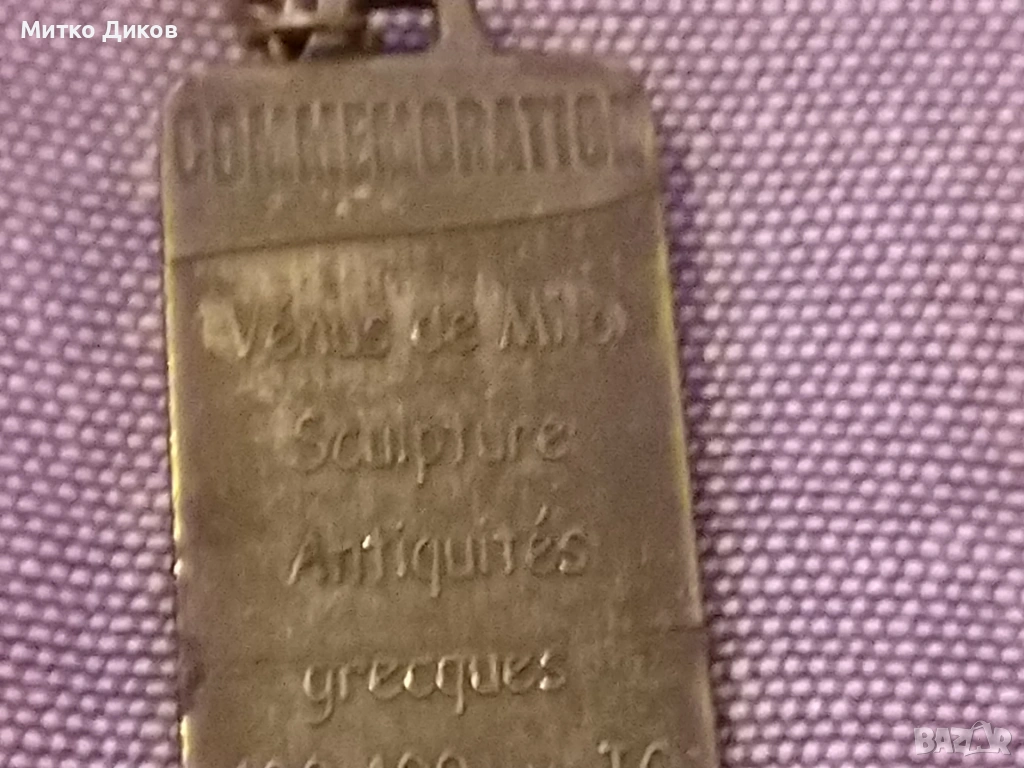 Венера Милоска бронзов плакет винтидж с верижка Venus De milo → Обява 53327112
