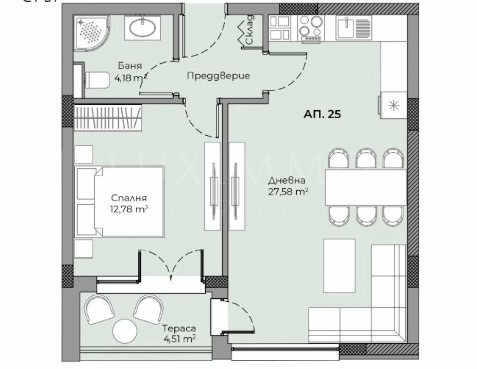 Със своите 27 просторни апартамента - двустайни, тристайни и четиристайни /част от които с дворни веранди/, 4 гаража и 23 паркоместа, комплексът предлага изключителна функционалност и удобство. Всяко жилище е проектирано с мисъл за простор, естествена светлина и съвременни технологии, гарантиращи уют и енергийна ефективност.