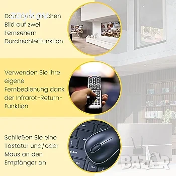 Функция за връщане на инфрачервен сигнал: с функцията за връщане на инфрачервен сигнал можете да продължите да използвате текущото си дистанционно управление, дори ако вашият HDMI източник е в друга стая