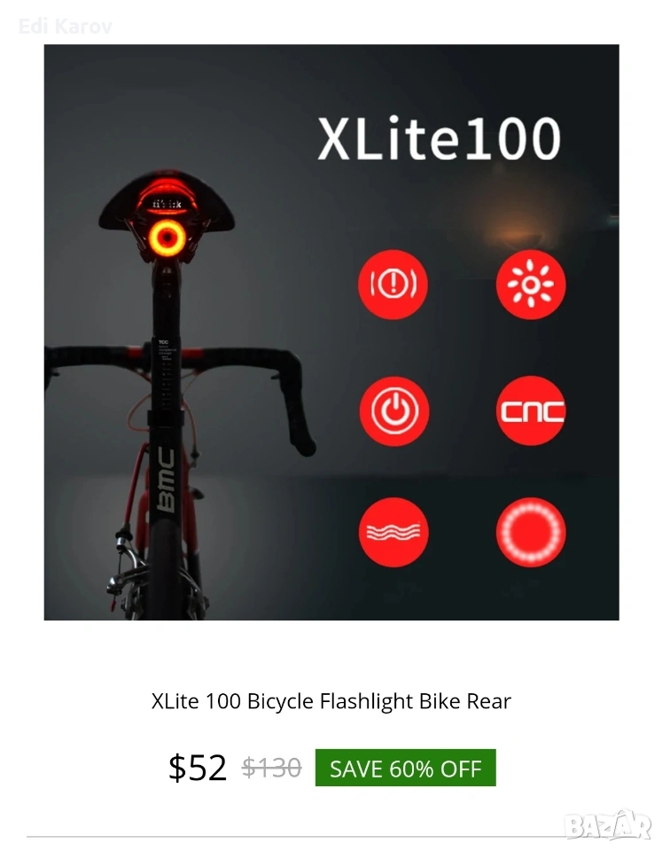 задна светлина за велосипед, снимка 1 - Аксесоари за велосипеди - 53327620 1/1