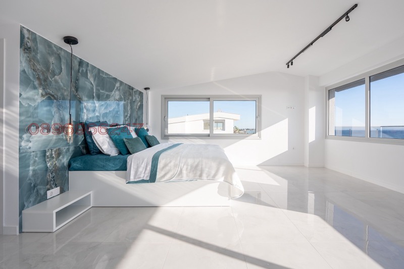 Разполага с четвърта спалня от 50 кв.м., с гардеробно помещение, красивa баня и веранда с гледка отново към плажа и безкрайната синевa на морето.