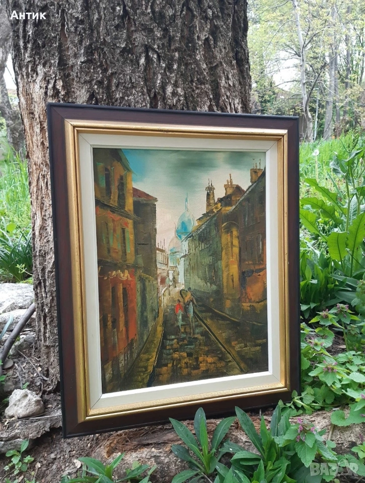 Красива Стара Картина Уличен Пейзаж Живопис Маслени Бои на Платно → Обява 53327691