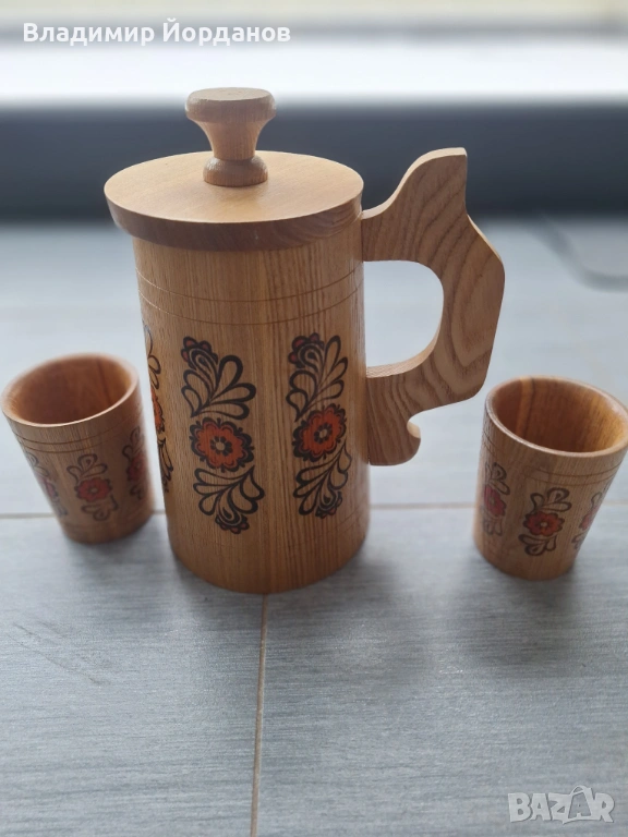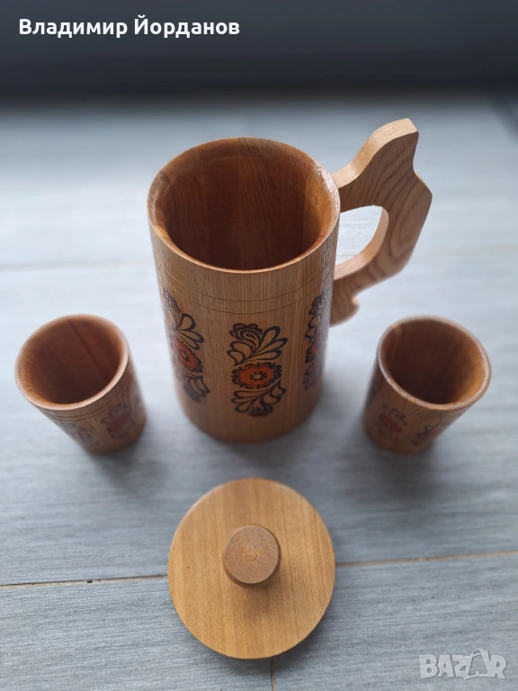 Уникална дървена кана 2 литра комплект с дървени чаши и похлупак → Обява 53327917