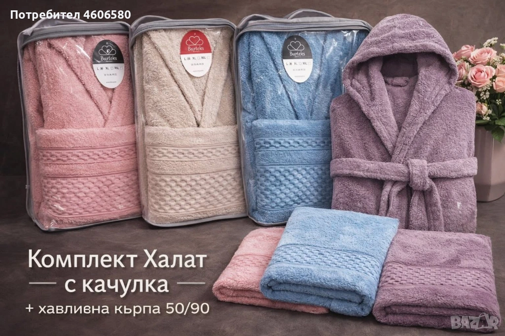 🩷 Хавлиен комплект за баня с халат и кърпа 🩷