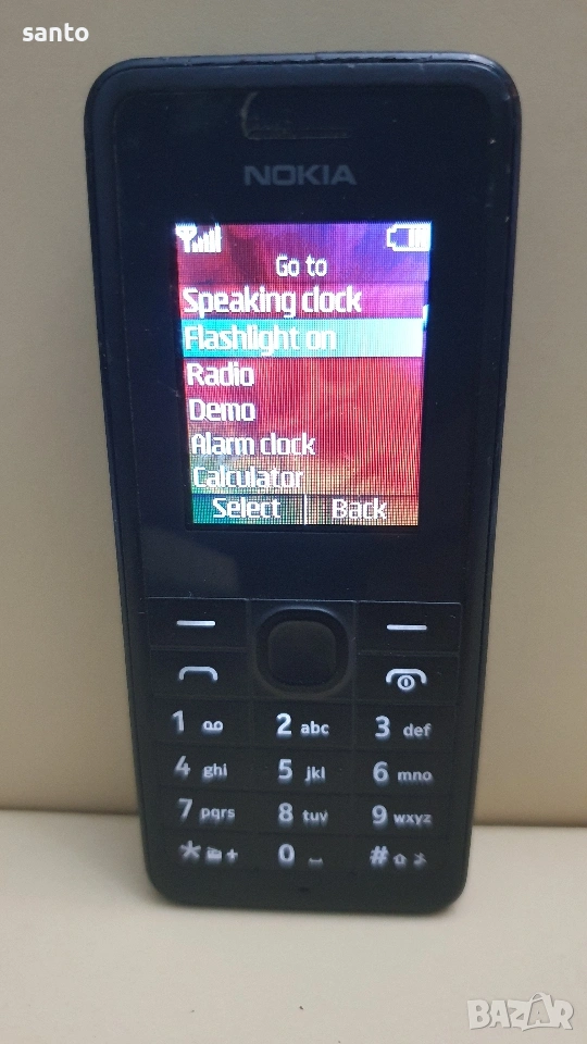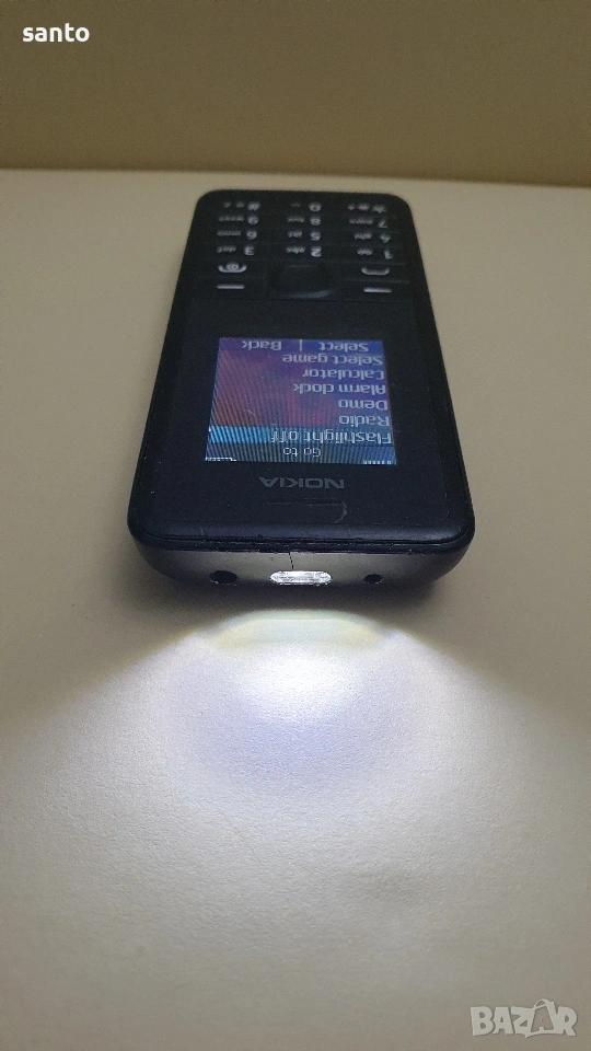 Нокия с фенерче. Телефона работи с всички оператори без бг език с батерия.