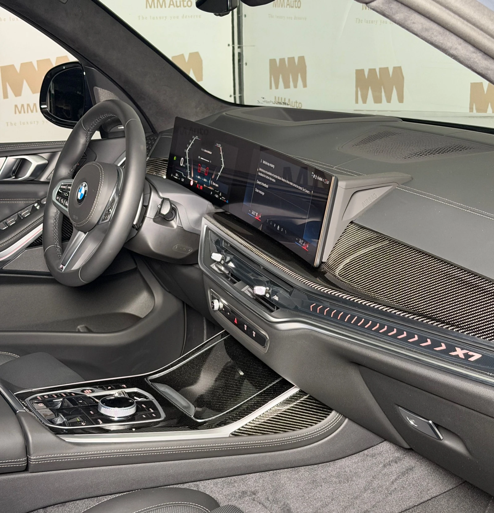 ******INSTAGRAM - https: //www. instagram. com/mmauto_bulgaria/? hl=en ******TIKTOK - https: //www. tiktok. com/@mmauto_bulgaria _________________ ММ Ауто представя 2024 BMW X7 40d xDrive M-Sport PRO ______________________________ * Гарантиран произход! *Предоставяме възможност за преглед преди закупуване в избран от Вас сервиз! *Възможност за лизинг! **Последвайте ММ Ауто и в социалните мрежи, където ще можете да следите новостите в автомобилният свят! __________________________ __ S258A Гуми с Runflat технология S2TBA Спортна автоматична трансмисия S322A Комфортен достъп (безключово отключване и стартиране) S418A Пакет за багажното отделение S456A Комфортни седалки с памет S4URA Амбиентно вътрешно осветление S548A Километраж в километри S5ACA Асистент за дълги светлини S5ALA Активна защита S1CBA CO₂ оборудване S1FKA BMW леки алуминиеви джанти V-spoke 755M, Runflat S1MAA M спортна изпускателна система S230A Допълнителен пакет EU спецификация S2PAA Заключващи болтове на джантите S2VBA Индикация за налягането в гумите S2VHA Интегрално активно завиване на предния мост S2VSA Executive Drive Pro S302A Алармена система S323A Soft-Close автоматично затваряне на вратите P337A M спортен пакет P33BA M Sport пакет Pro S3DMA BMW Crystal фарове Iconic Glow S3DNA BMW бъбрек решетка Iconic Glow S3M3A M спортни спирачки, черни с висок гланц S3MCA M релси на покрива Shadow Line S407A Панорамен стъклен покрив Sky Lounge S413A Мрежа за багажното отделение S420A Слънцезащитни стъкла S423A Велурени стелки S44AA Поставка за чаши с регулиране на температурата S453A Климатизирани предни седалки S4A2A Стъклени елементи Crafted Clarity S4FLA Travel & Comfort релсова система S4GQA M предпазни колани S4HAA Подгряване на седалките отпред и отзад S4HBA Пакет топлинен комфорт отпред S4M5A Индивидуално кожено табло S4MCA Интериорни лайсни от карбон S4T7A Масажна функция за водача и предния пътник S5AUA Професионален пакет асистенти за шофиране S5AVA Active Guard S5DWA Професионален асистент за паркиране S654A DAB цифров радио тунер S688A Harman/Kardon съраунд аудиосистема S6AEA Телесервизи S6AFA Законова система за спешни повиквания S6AKA ConnectedDrive услуги S6C4A Connected Package Professional S6NXA Поставка с безжично зареждане S6PAA Персонална eSIM карта S6U3A BMW Live Cockpit Professional S6U8A BMW управление с жестове S710A M кожен волан S715A M аеродинамичен пакет S760A Shadow Line с висок гланц S776A Таван Alcantara антрацит S7M9A M Shadow Line с разширено съдържание P7RSA Пакет Комфорт S8R9A Хладилен агент R1234yf P9D8A Exclusive пакет