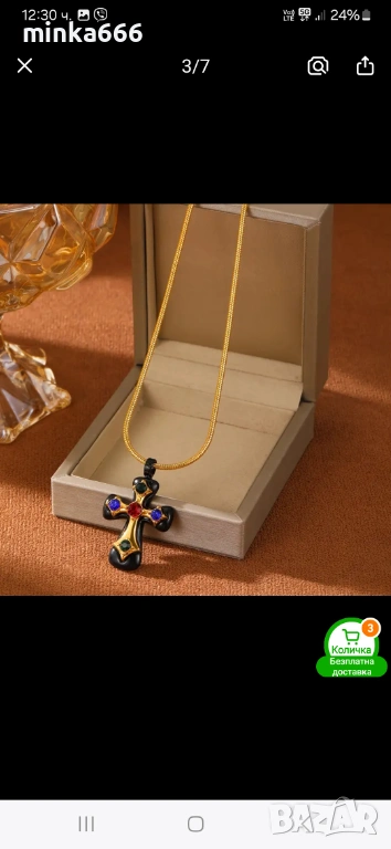 Дамско колие с кръст, снимка 1 - Колиета, медальони, синджири - 53328274 Дамско колие с кръст, снимка 2 - Колиета, медальони, синджири - 53328274 Дамско колие с кръст, снимка 3 - Колиета, медальони, синджири - 53328274 1/3