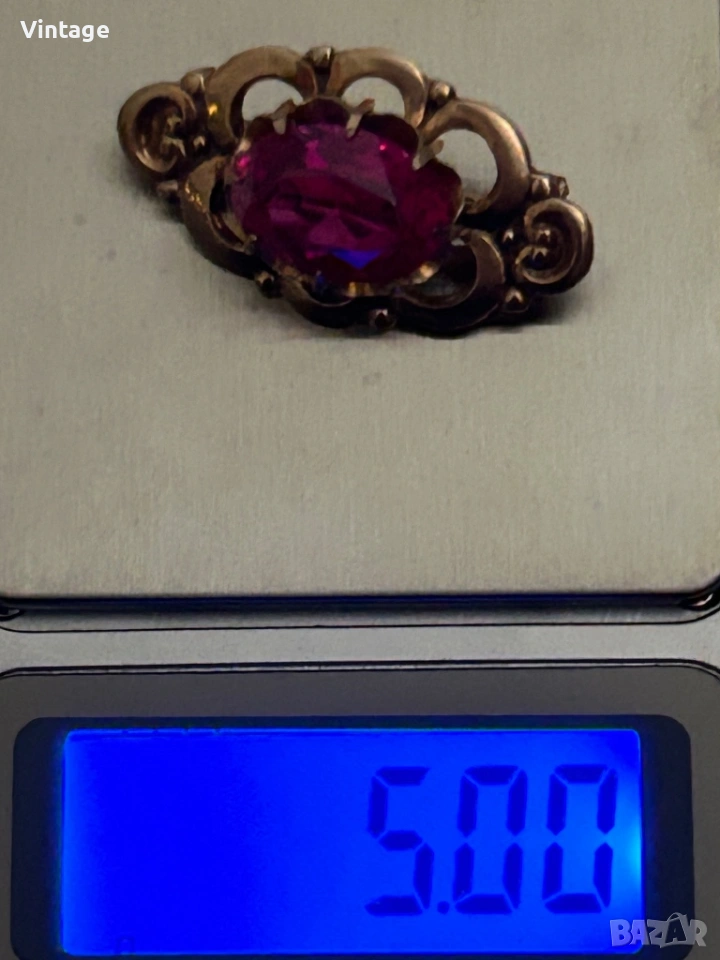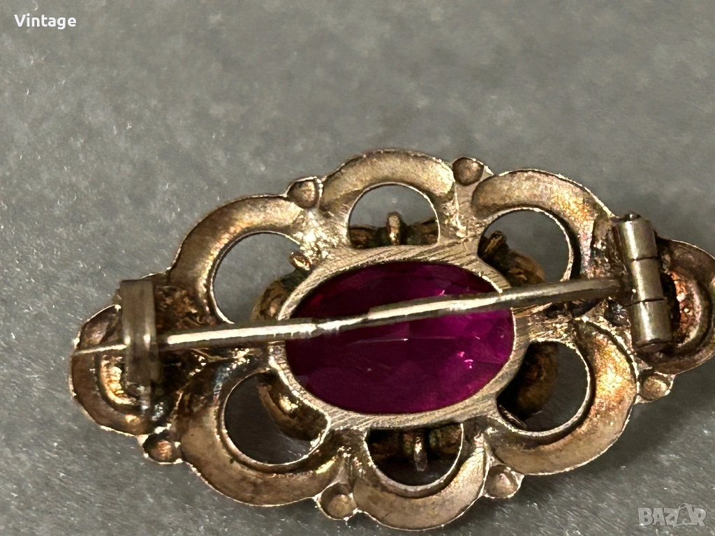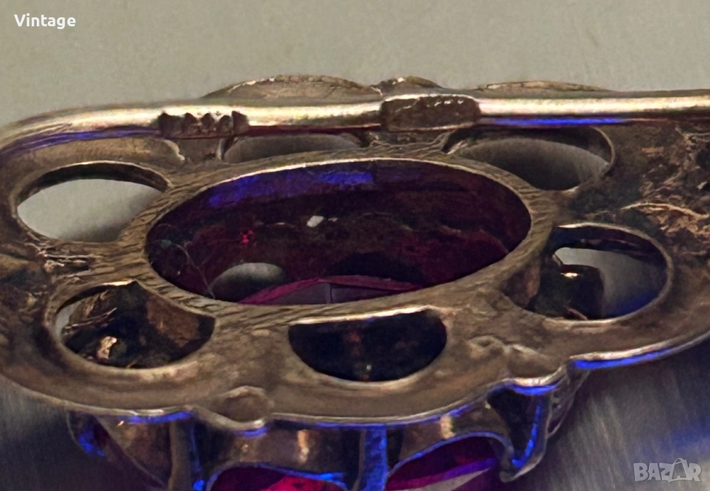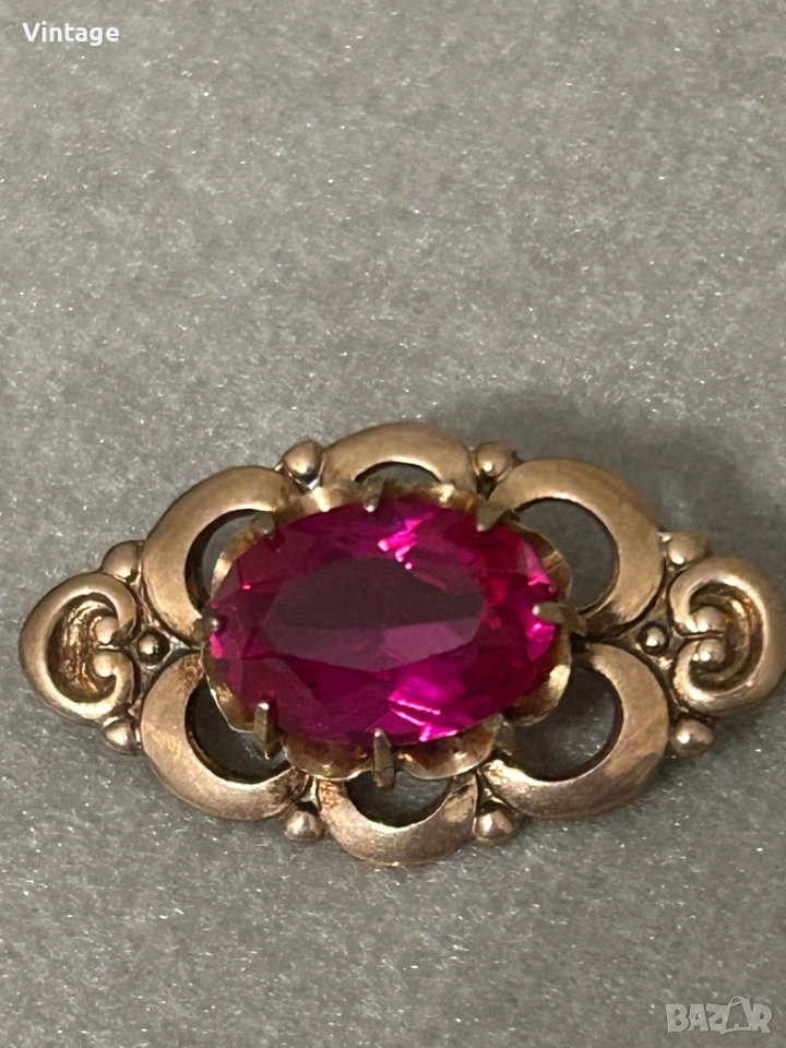 Антикварна съветска сребърна позлатена брошка с рубин → Обява 53328876