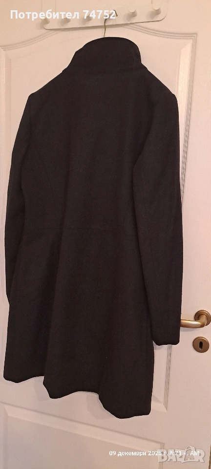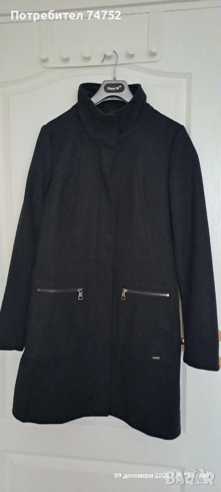 Продавам черно зимно палто с вълна. Размер м. Няма забележки, слагано е два пъти.