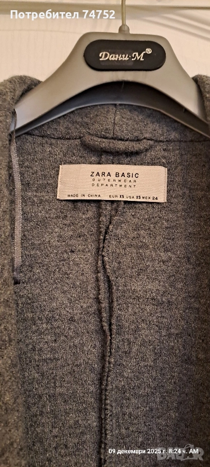 Продавам жилетка на Зара, размер ХС, но става и за С-М, със съдържание на вълна. Няма забележки.