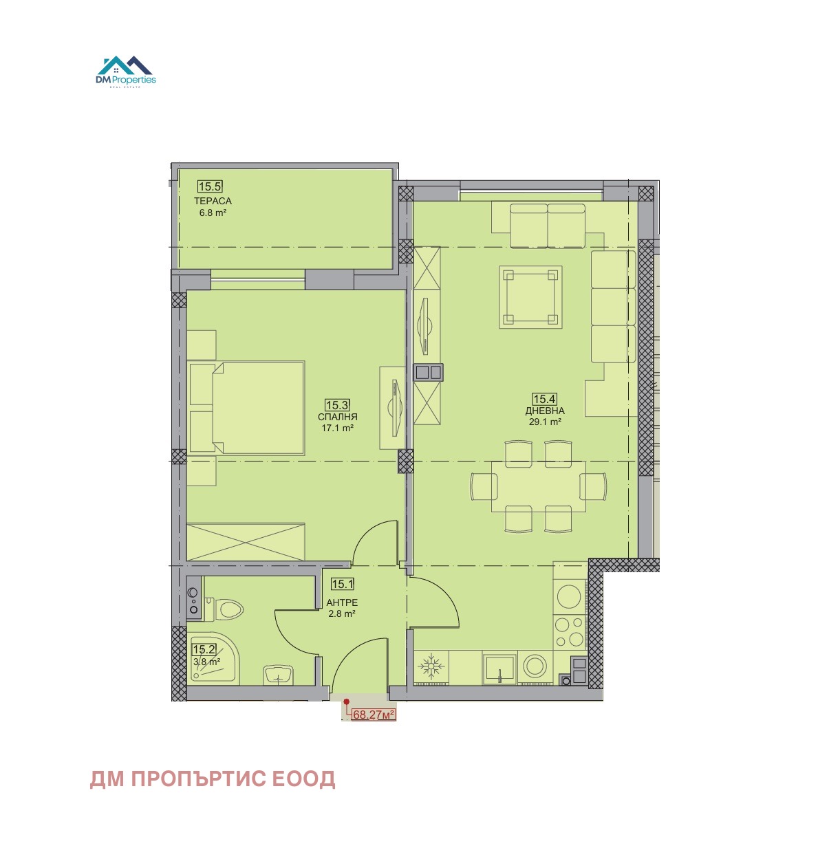Ексклузивно! ДМ Пропъртис продава просторен двустаен апартамент с възможност за преустройство в тристаен, разположен в нова жилищна сграда с Акт 15 кв. Малинова долина. Имотът е с обща площ от 79 кв.м, от които 71 кв. м чиста застроена площ и се намира на 3-ти етаж от 4. Апартаментът е със западно изложение, което осигурява приятна естествена светлина през втората половина от деня. Отоплението е предвидено на ток. Разпределението включва просторна всекидневна от 32 кв.м, спалня, баня с тоалетна и възможност за функционално преразпределение според нуждите на бъдещия