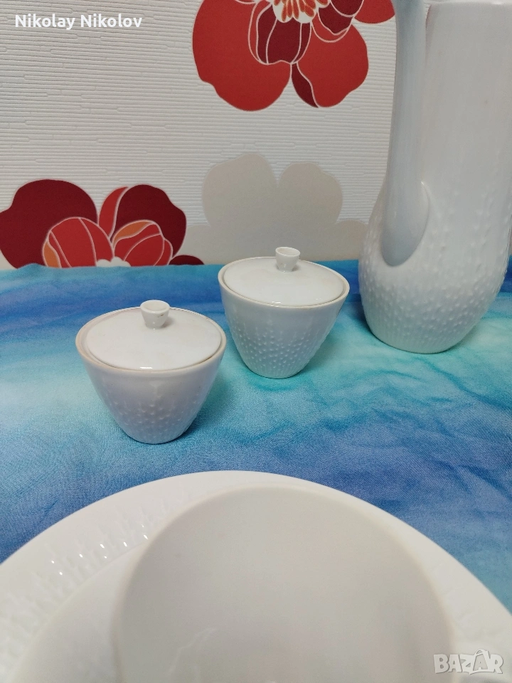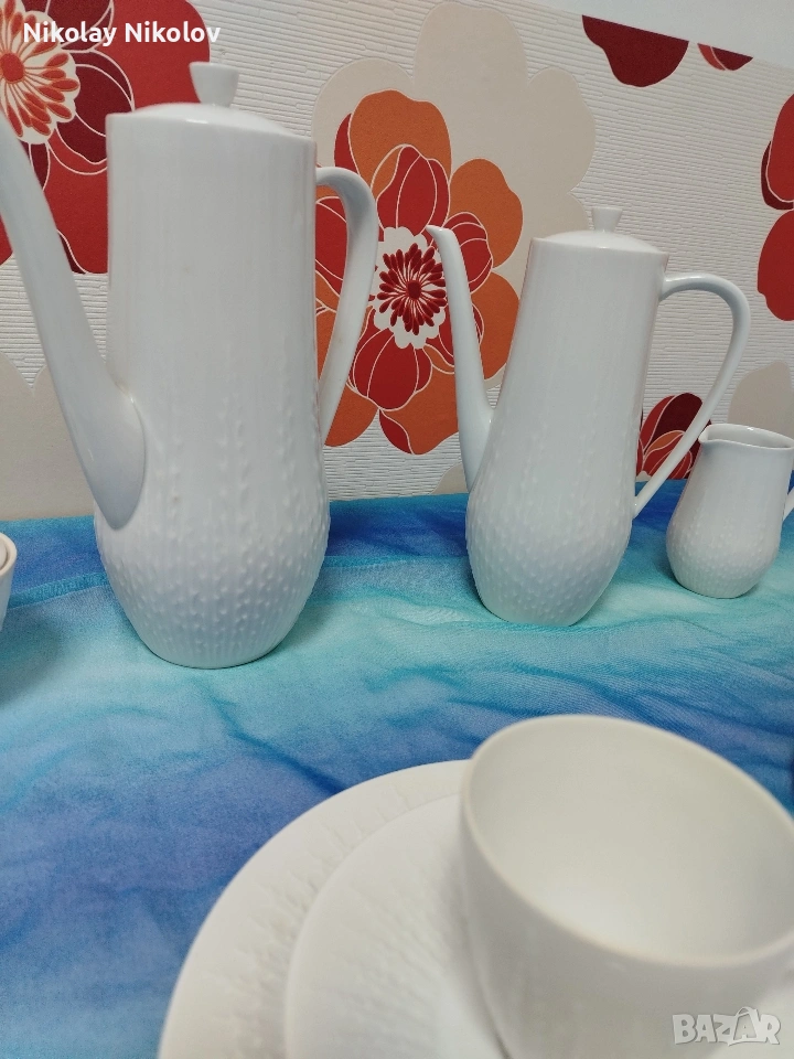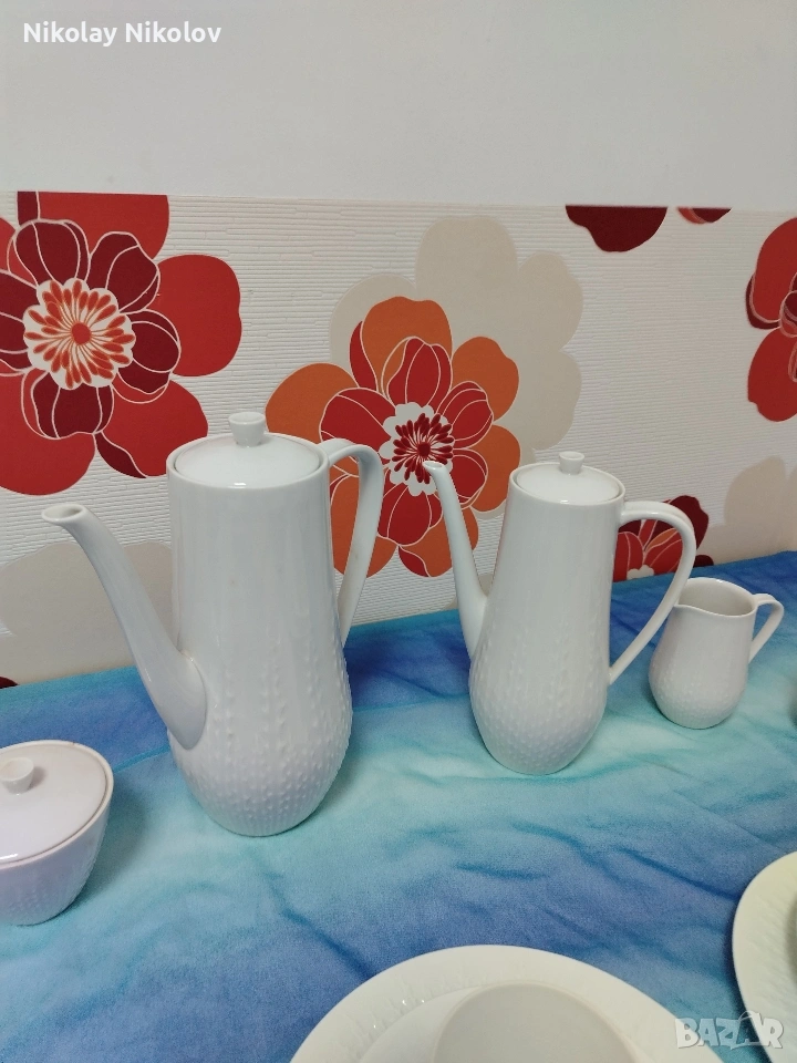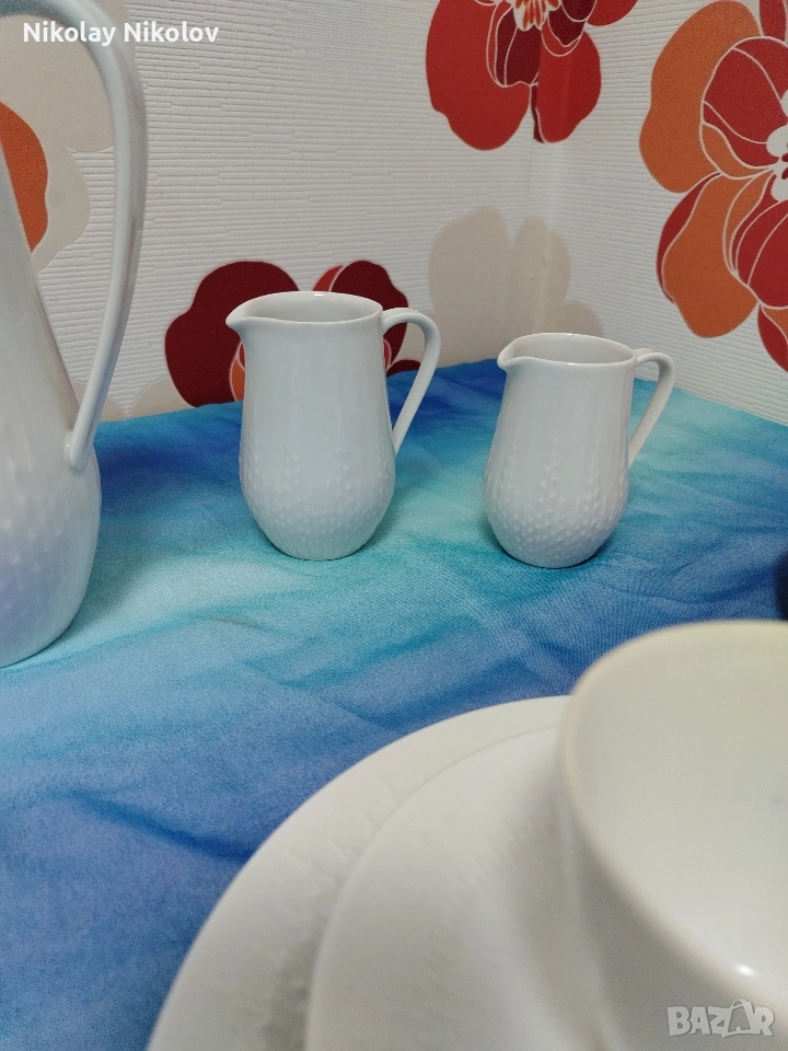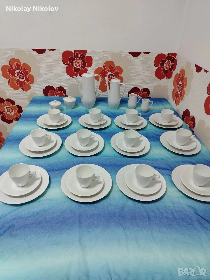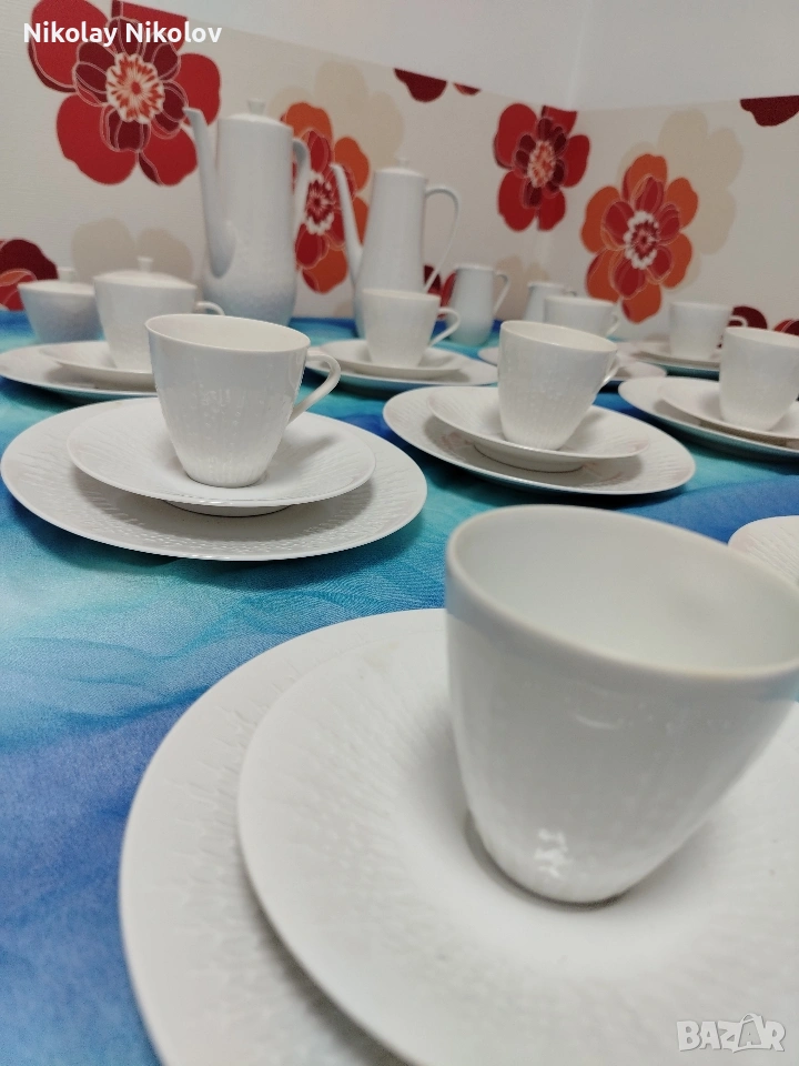 Предлагам прекрасна изработка на порцеланов сервиз от известна немска марка сервизът е без следи от употреба с красиви декоративни орнаменти изчистен състоящ се от