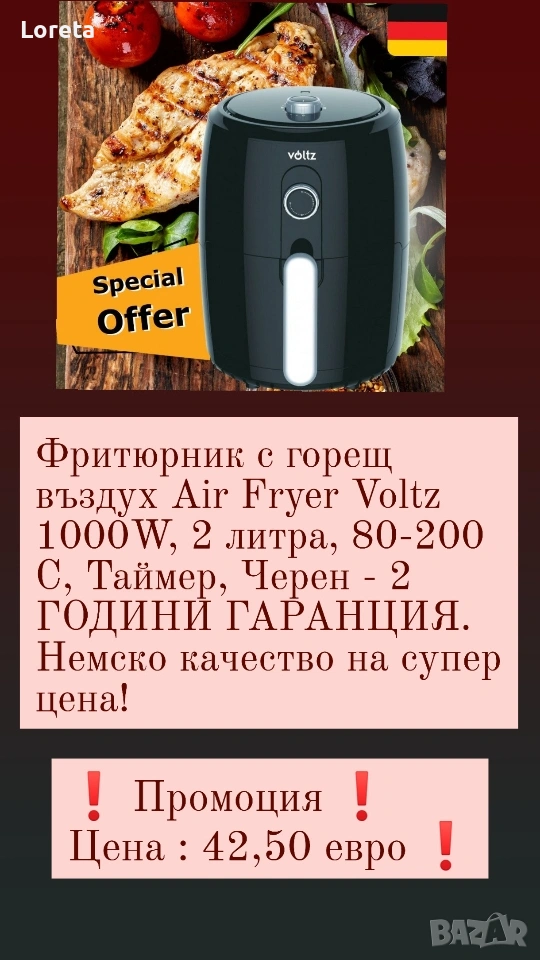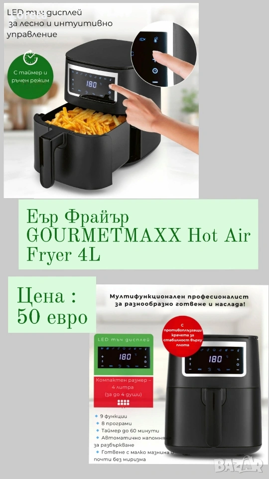 Продавам Мултикукъри , Еър Фрайери и фритюрници на Топ цени . Всичко е в гаранция , нови , директно от склад . Изпращаме с форма Еконт с опция преглед и тест.