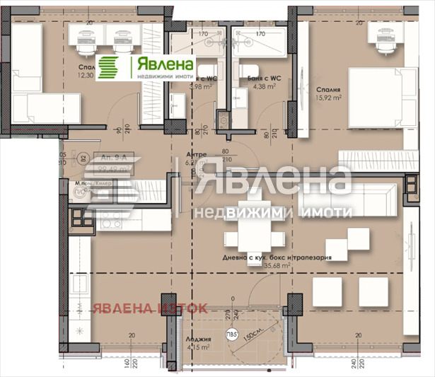 Явлена Изток продава новострояща се сграда във Връбница, в близост до Северен парк .Тук жителите могат да се насладят на спокойствието на квартала, без да се отказват от лесния достъп до търговски центрове, ресторанти. Сградата разполага с различни по площ апартаменти, предлагащи разнообразни възможности за клиентите. Светли стаи, големи прозорци и балкони с прекрасни изгледи създават уютна атмосфера във