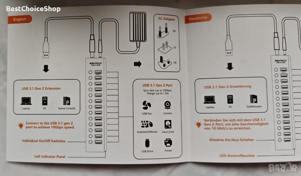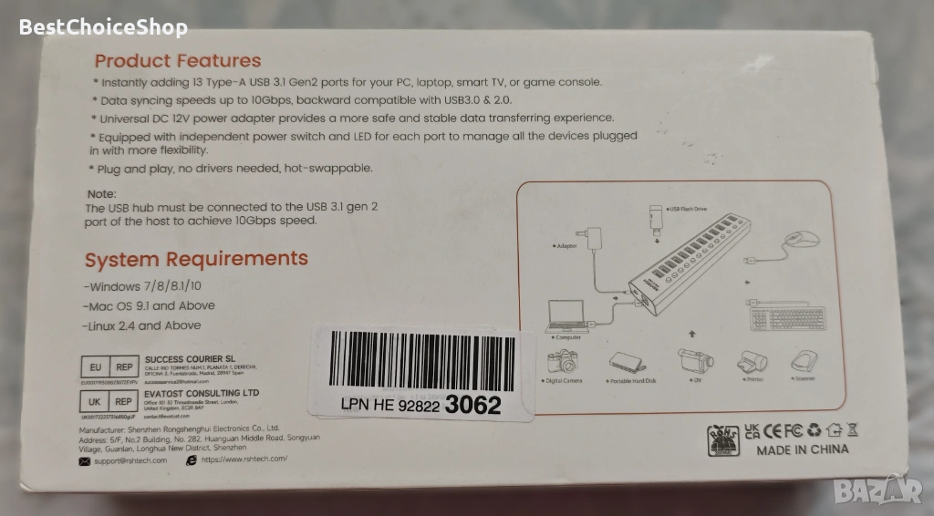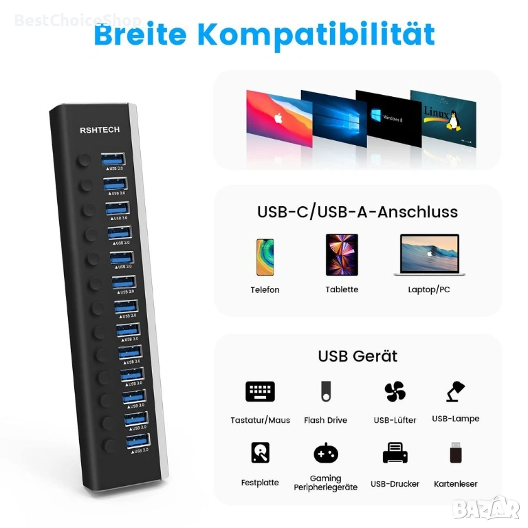 Подходящ за външни HDD/SSD, флашки, баркод скенери, принтери, POS периферия