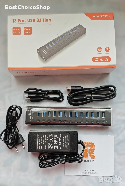 Включени кабели: USB-A към USB-C + захранващ адаптер (EU щепсел)