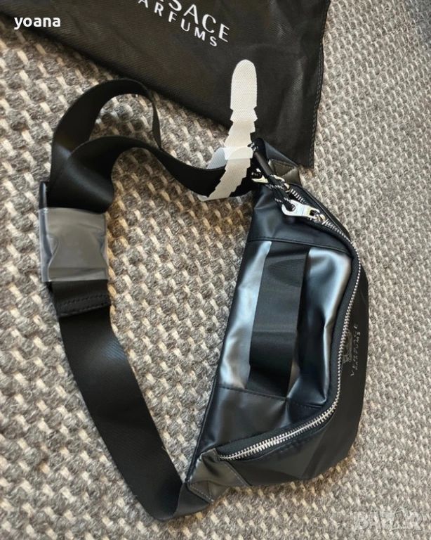 Оригинални чанти за кръста Versace Parfums / Versace Fragrances. Практични и леки, с изчистен дизайн и лого на Versace. Подходящи за ежедневна употреба, пътуване, разходки или спорт – побират телефон, ключове, портмоне и други малки вещи.