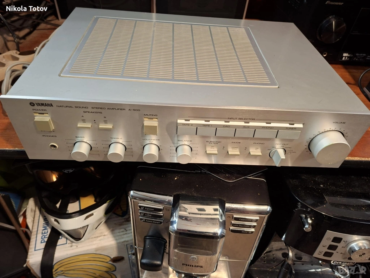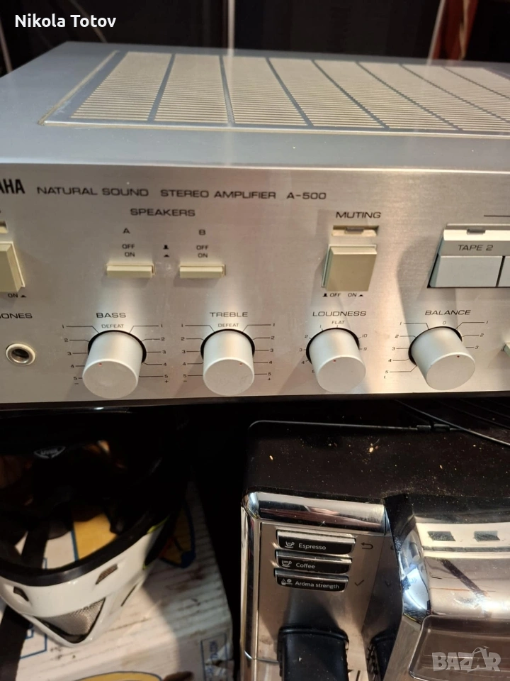 Продава се усилвател Yamaha A-500. Работещ. Състоянието се вижда на снимките. Намира се в Пловдив. Цена 75 евро. За повече информация и снимки ми пишете на лс или звъннете на посочения номер 089 692 8376.
