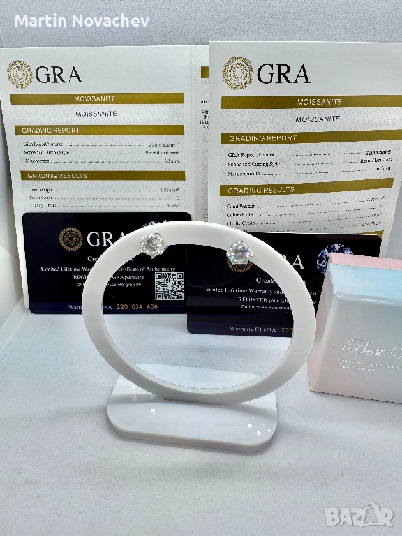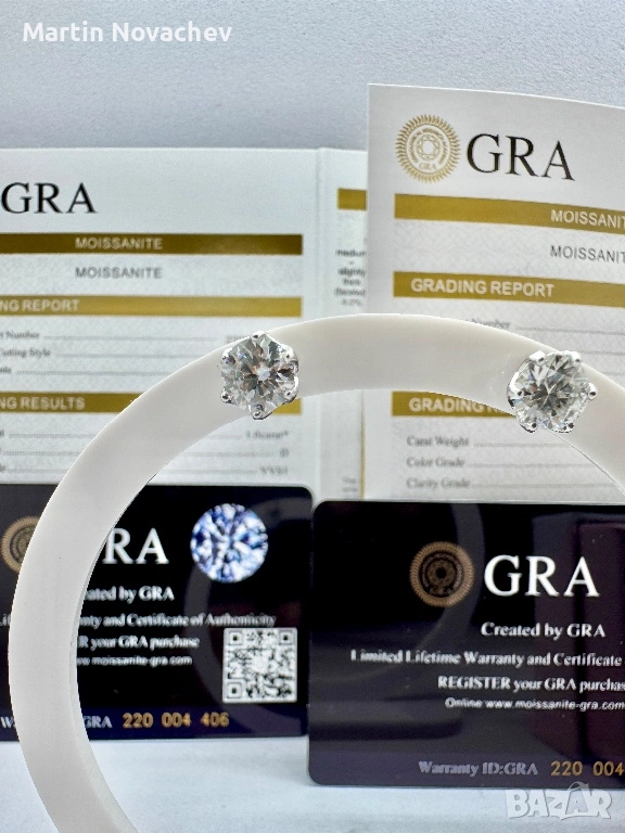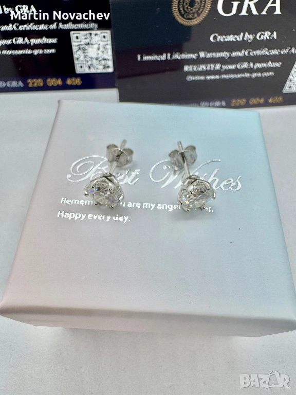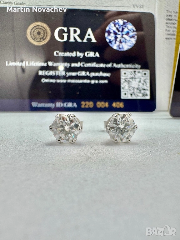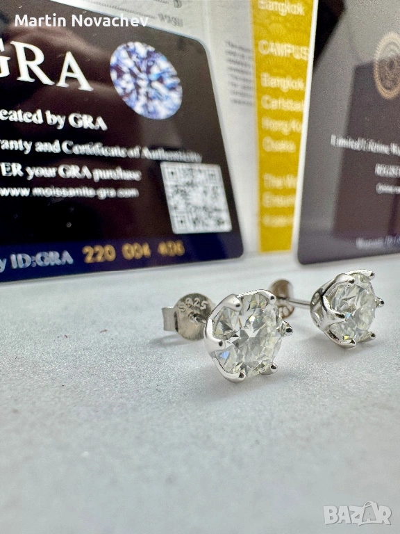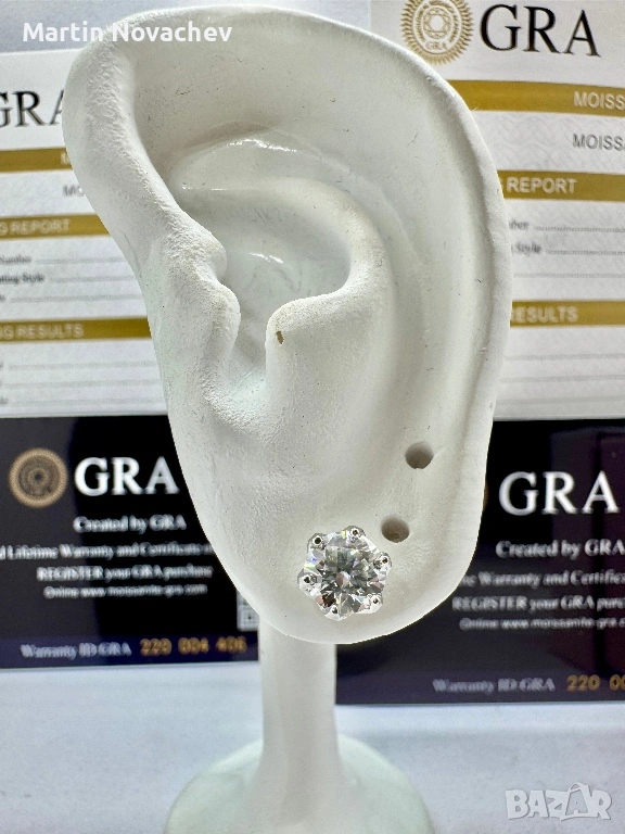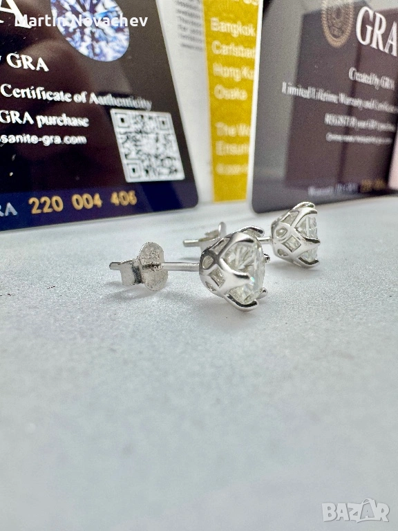 Сребърни обеци с мойсанит (Диамант) 1 карат → Обява 53330782