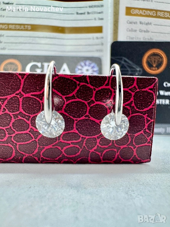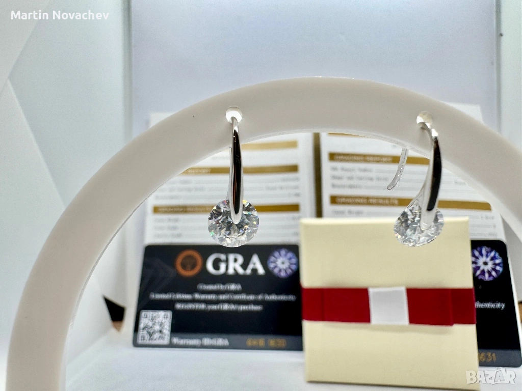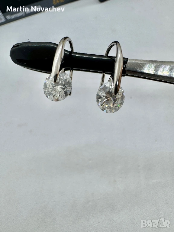 Сребърни обеци с мойсанит (Диамант) 1 карат → Обява 53330907