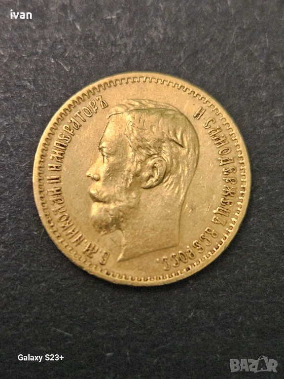 Предлагам златна монета ,5 рубли от 1901,император Николай 2,тегло 4.3 грама с чистота 900/1000 → Обява 53330918