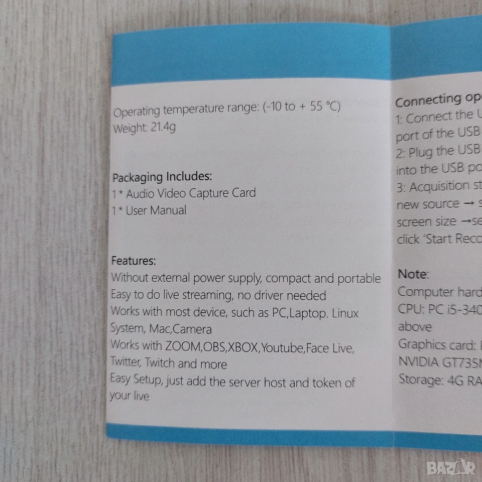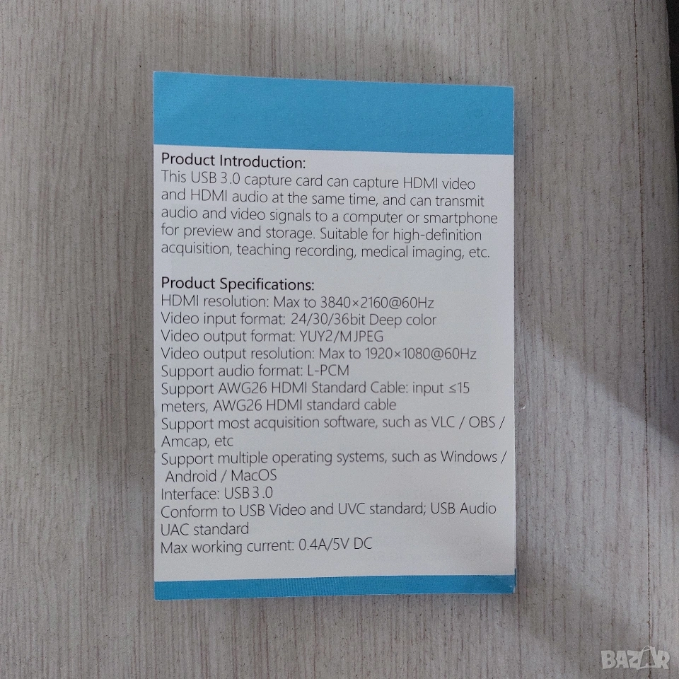 Високо качество: Поддържа входящ сигнал до 4K (3840x2160 @ 30Hz) и запис/стрийм в Full HD 1080p @ 60fps.