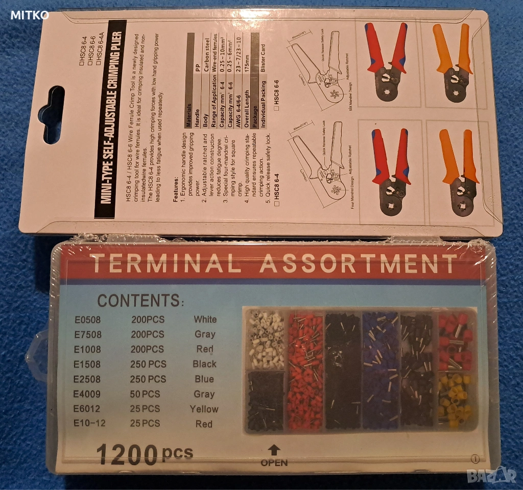 Комплект кримпващи клещи + 1200 кабелни обувки