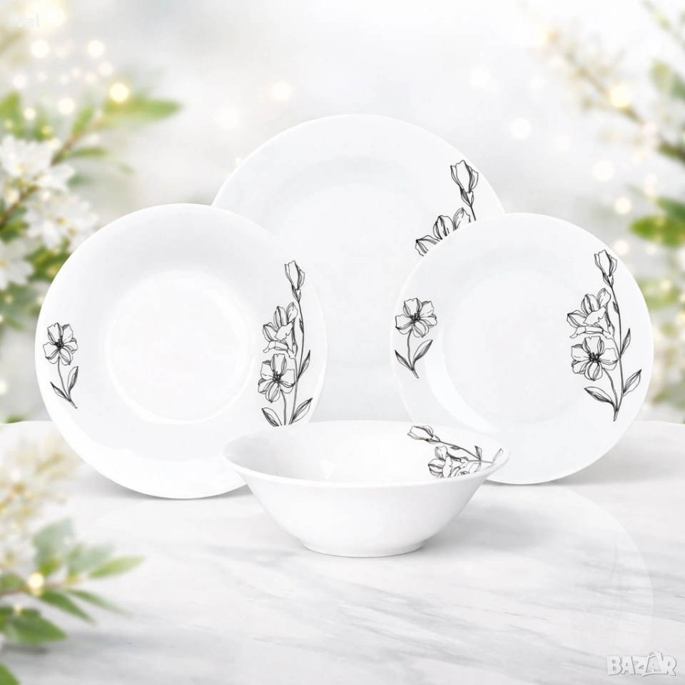 Комплект чинии 24 части с елегантен флорален дизайн – Лекота и стил за всяка трапеза → Обява 53331403