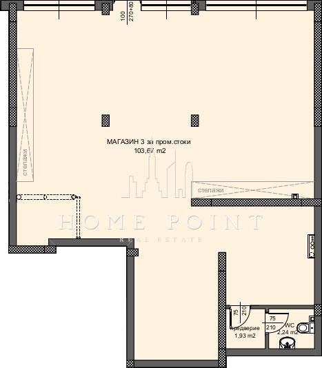 ГОЛЯМА ВИТРИНА ! Предлагаме на вашето внимание, търговски обект със статут на магазин в нова луксозна тухлена сграда с акт 16 !!! Помещението е разположено изцяло на едно ниво - партер и разполага с голяма височина ! Предлага се напълно завършен до ключ с поставени подови настилки и завършени санитарни възли ! Към търговски площи са образувани безплатни парко места !!! Обекта е подходящ за медицински център, лекарски или стоматологични кабинети, фризьорски център, офис-представителство, както и за всякакъв друг вид търговска дейност !!! Страхотно предложение за вашият бъдещ или настоящ бизнес !!! Приложената снимка е с илюстративна цел ! За ваше удобство прилагаме схема на обекта ! Възможност за кредитиране от всички банкови институции !!!ОФ-348