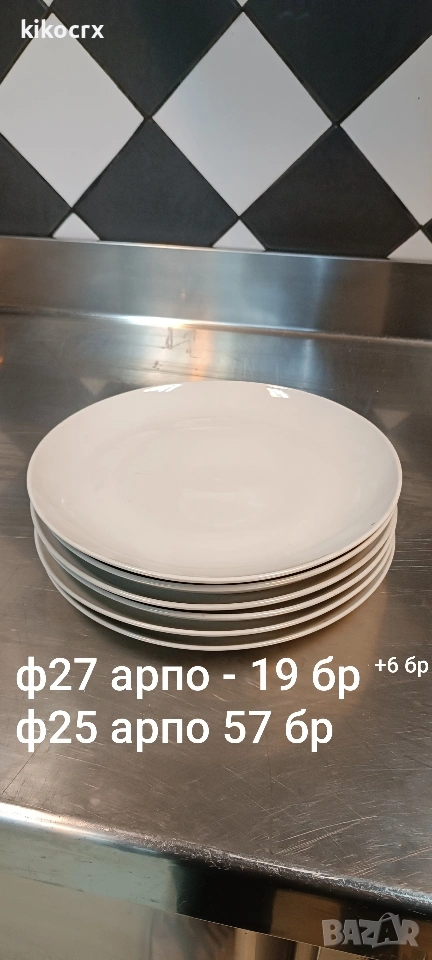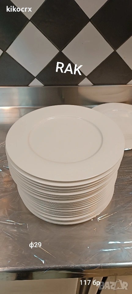 Продавам професионални чинии и плата, подходящи за ресторанти, хотели и заведения. Налични са утвърдени марки като RAK Porcelain, Villeroy & Boch, GÜRAL, Kütahya, ARPO – здрави, издръжливи и създадени за интензивна употреба. Наличности и цени: Villeroy & Boch • 28.5 см – 6 бр. – 10 € GÜRAL • 26 × 26 см – 34 бр. – 5 € RAK Porcelain • 26 × 31.5 см – 14 бр. – 10 € • 28.5 см – 46 бр. – 12 € • 29 см – 15 бр. – 12 € • 11 × 30.5 см – 19 бр. – 8 € • 29 см – 121 бр. – 10 € • 23 см (черни) – 9 бр. – 10 € • 26.5 см – 15 бр. – 10 € • 24.5 см – 44 бр. – 10 € • 29 см – 117 бр. – 10 € • 33 см – 39 бр. – 10 € Kütahya • 27 см – 103 бр. – 7 € • 30 см – 28 бр. – 7 € ARPO • 27 см – 25 бр. – 5 € • 25 см – 57 бр. – 5 € Плата • 25.5 × 27.5 см – 2 бр. – 5 € • 31 × 31 см – 9 бр. – 5 € Разполагам и с различни чинии по 1–2–3 бр. от вид, без установена марка – цена по договаряне. Има и чукнати / ударени чинии от гореизброените – оглед на място, цена по договаряне. Подходящи за заведения Възможност за покупка на количество За въпроси – пишете или се обадете, имам и още снимки RAK Porcelain е един от водещите световни производители на професионален порцелан за HoReCa сектора. Марката е предпочитана от ресторанти и хотели по целия свят заради изключителната здравина, дълготрайност и модерен дизайн. Чиниите RAK са създадени за интензивна ежедневна употреба, устойчиви са на надраскване и термичен шок и запазват визията си във времето.