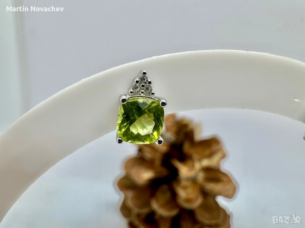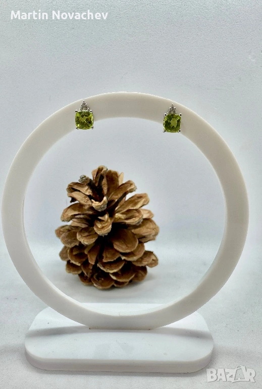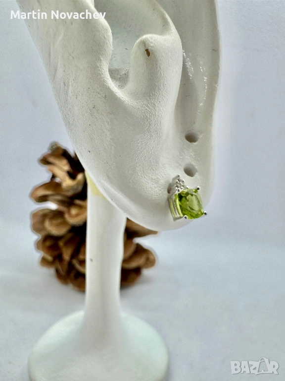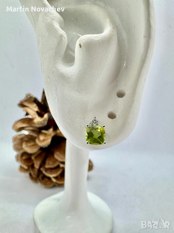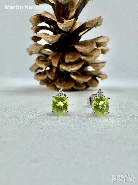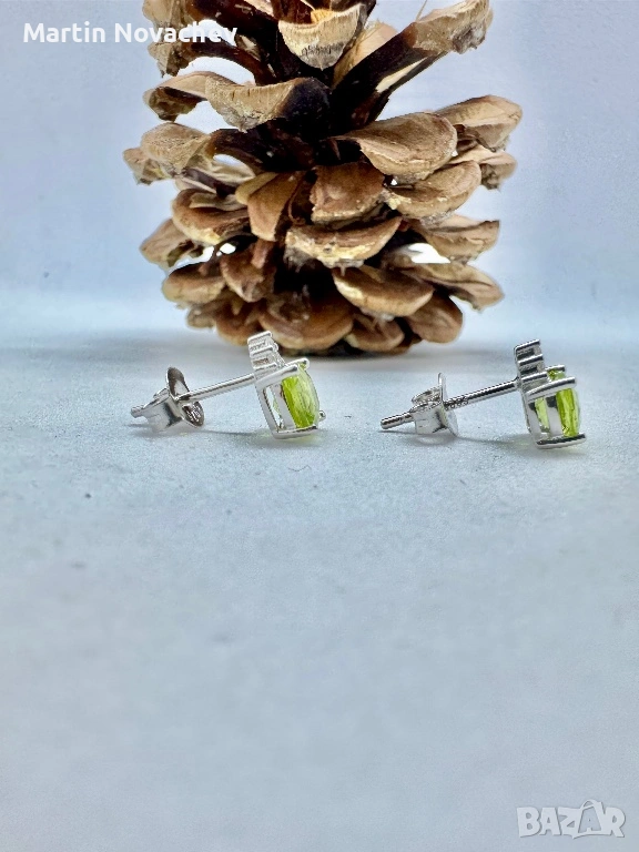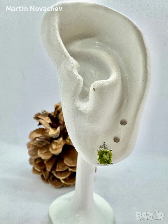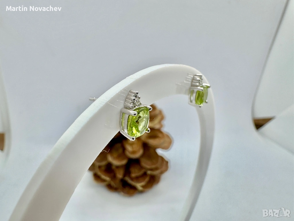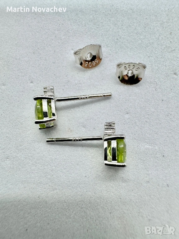 Сребърни обеци с естествен перидот → Обява 53331707