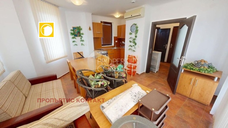 Предлаганият за продажба имот се намира в затворен комплекс "Бей Вю Вилас", с красив панорамен изглед към Слънчев бряг и морето. Апартаментът е разположен на 3 етаж и е с площ от 71 кв.м., и се състои от: входно антре, дневна с кухненски бокс, спалня, баня с тоалетна, отделна тоалетна и голяма тераса с прекрасен панорамен изглед. Жилището се продава напълно обзаведено и оборудвано с техника. Комплекс „Бей Вю Вилас“ се намира на 3 км от Слънчев бряг и морето и предлага на своите собственици множество удобства, като: целогодишна охрана, паркинг, 4 открити басейна, 2 бара, 3 ресторанта, СПА и фитнес, детски кът, магазин за хранителни стоки.