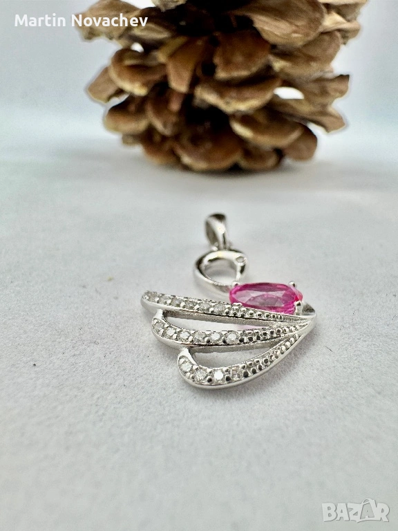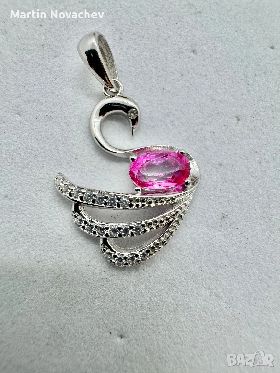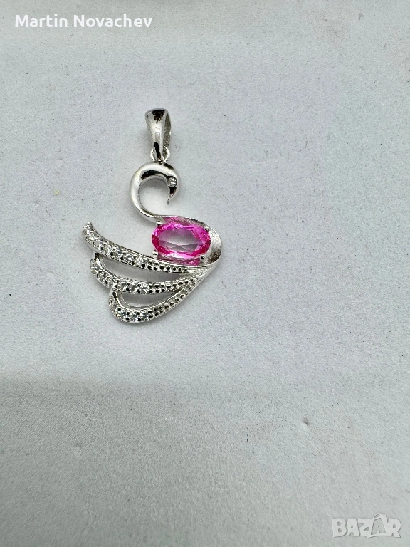 Сребърна висулка лебед с естествен розов топаз → Обява 53331829
